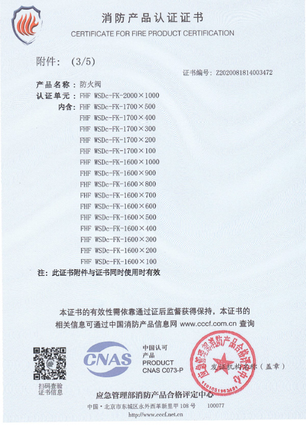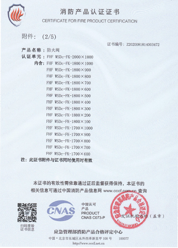 防火閥認證證書2000X1000